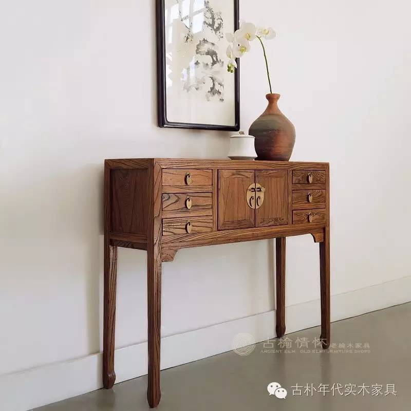 榆木家具的特点: 榆木是一种高大的落叶乔木,生长在中国的北方。木性坚韧,具有像羽毛一样层层扩展开来的花纹,清晰而通达。   1.榆木家具经久耐用,使用清漆,手工擦漆,环保无味无污染.榆木家具所需的木料榆木成材周期在五十年以上,密度大,木材硬,天然纹理优美。一般的水曲柳,松木,樱桃木成材则只有三年至五年,成材时间短,木纤维短,木材发软,爱变形.   2.榆木家具榫卯结构,不用一根钉子,结构严谨,做工精细.榆木家具制作结合方式的框架结构均采用科学的榫卯结构,简单牢固,合乎力学原理. 3.中国的榆木家具以明式款为主,造型简练,线条流畅,风格典雅大方.明式家具装饰适度,繁简相宜,局部装饰恰如其分。
