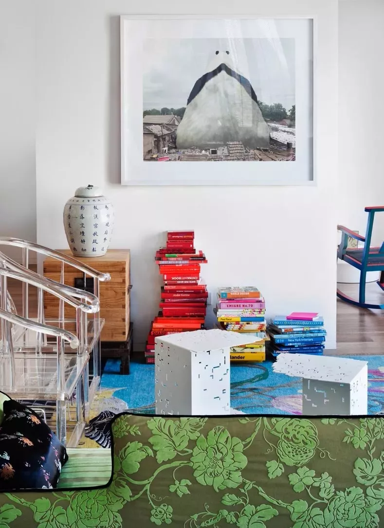 我喜欢一切柔软的材料,沙发是绒布的、桌子是木材的、灯是橡胶的……在我的家里凡是可以坐的东西都是能让人躺着陷进去的,在家就得舒服轻松一点。